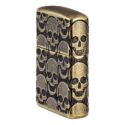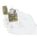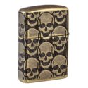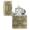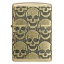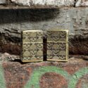 Mặt trước của Zippo Armor Cackling Cranium Multicut Antique Brass – 46302 là hình ảnh một đầu lâu cười (Cackling Cranium) – một biểu tượng đầy mạnh mẽ và ấn tượng. Họa tiết này được thiết kế với các chi tiết sắc nét, thể hiện một cái nhìn dữ dội và gai góc, mang lại cảm giác mạnh mẽ, thậm chí có phần “huyền bí”.