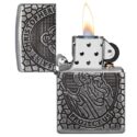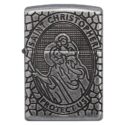 Zippo 49160 – Zippo Armor® St. Christopher Medal Design Antique Silver là dòng bật lửa Zippo vỏ dày Armor đồng thau mạ Chrome màu bạc giả cổ.