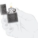 Hãng Zippo sử dụng công nghệ cắt khắc sâu đa chiều 360 độ MultiCut 4 mặt Zippo hình ảnh vị Thánh tử đạo Christopher – người nâng đỡ Chúa, vị thánh chuyên bảo hộ cho các chuyến đi xa và các binh sĩ mặt trước, hoạ tiết thánh giá mặt sau, và hoa văn làm điểm nhấn liền mạch ở các mặt còn lại.