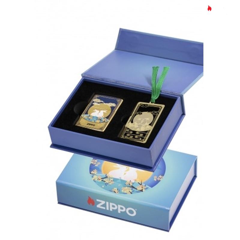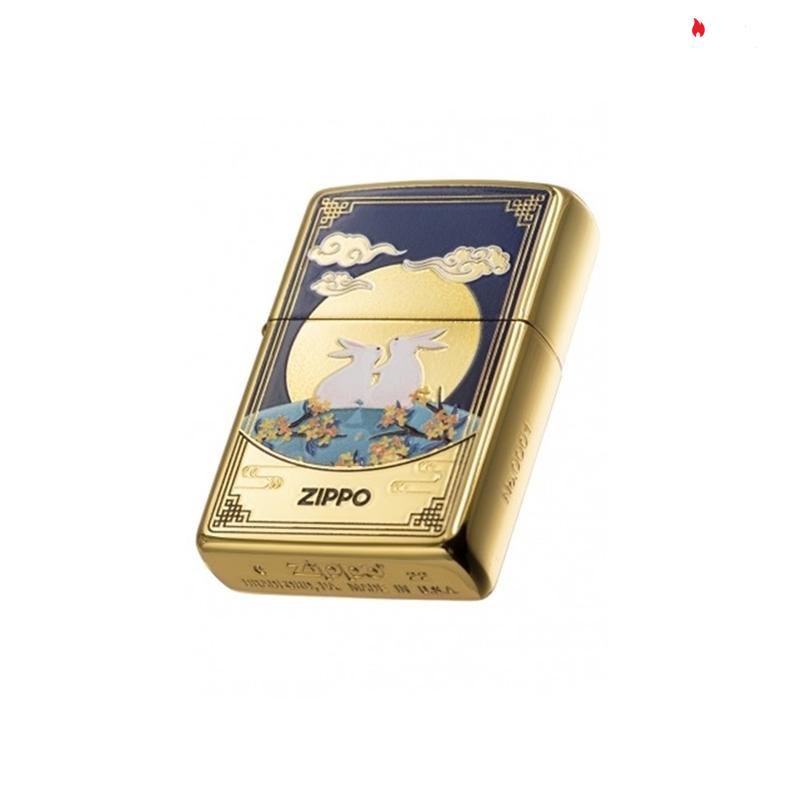 – Hình trăng tròn, hai con thỏ, đám mây và bông hoa được trang trí ở phía trước. Những đám mây và hoa văn truyền thống Trung Quốc với logo ZIPPO đặc trưng ở mặt sau.